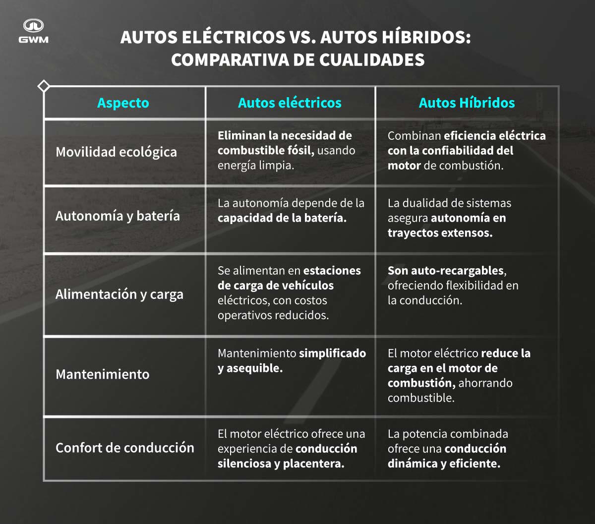 Cada uno ofrece ventajas únicas y beneficios específicos que pueden ser más adecuados para diferentes estilos de vida y requisitos de conducción.