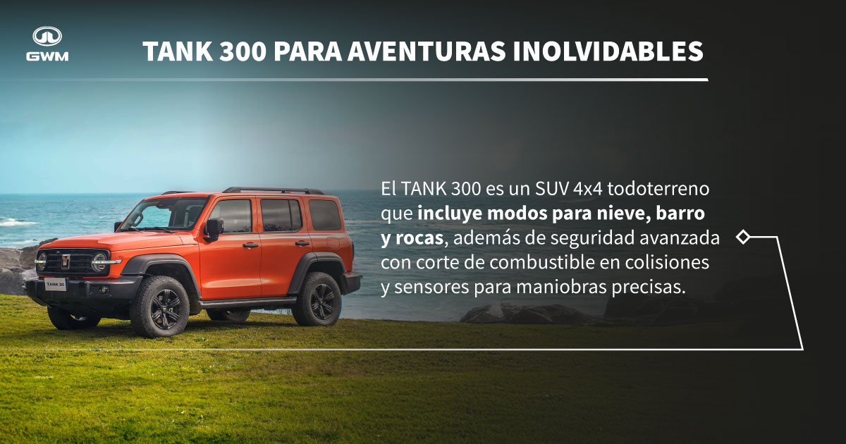 Con su combinación de potencia, tecnología y seguridad, el Tank 300 se posiciona como el compañero ideal para quienes buscan explorar sin límites.