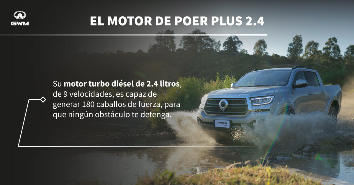 Su nombre ya indica una de las principales características de esta camioneta. New Poer Plus 2.4 turbo incorpora un nuevo motor turbo diésel de 2.4 litros, capaz de generar 180 hp y 480 Nm entre las 1.500 y 2.500 rpm.