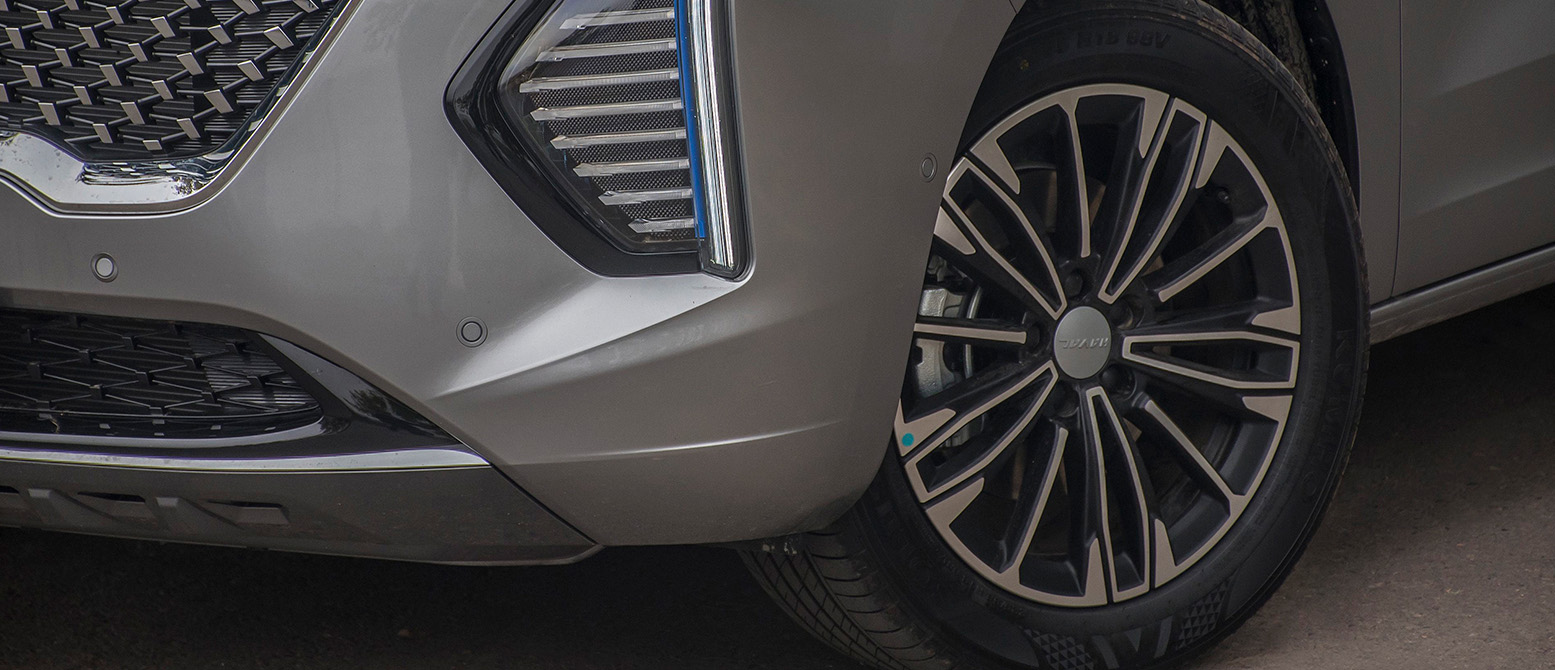 El HAVAL JOLION HÍBRIDO, un SUV grande, es una obra maestra de innovación. La parrilla, conectada a los focos principales, se une a la firma LED principal, y las luces en forma de rejilla aportan distinción. Elegancia con eficiencia híbrida.