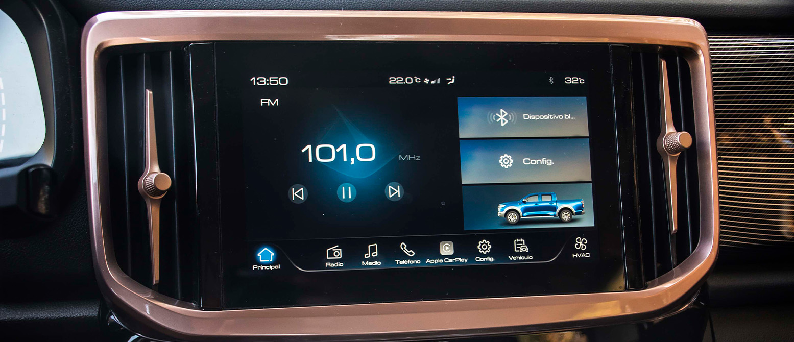 Equipada con conectividad Bluetooth, Apple CarPlay y Android Auto, la POER PLUS permite una integración perfecta con tu dispositivo móvil desde la pantalla táctil de 9".